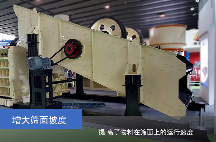 礦石沙料在篩面上移動速度慢,導致篩面上積礦厚, 壓礦嚴重。在實際使用中圓振篩的角度可以在 15°~35°之間調整,提 高了物料在篩面上的運行速度,物料在篩面上沒有積料現象的發生,并且能夠在篩面上很好的完成松散、分層和篩分的作用,處理能力大幅度增加。