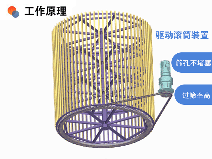 1、無網孔堵塞:圓筒內有清篩機構,在篩分過程中,不管進入物料多粘、多濕、多雜,通過清篩機與篩體的相對運動,都不會堵塞篩孔,從而提高了設備的篩分效率;